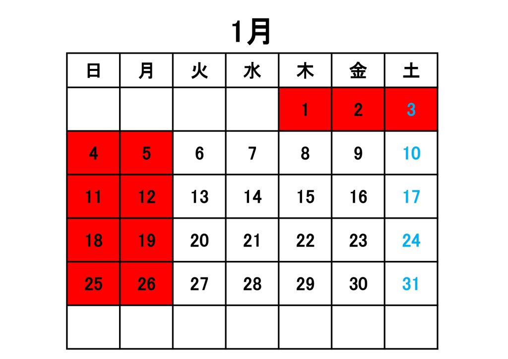 1月営業カレンダー