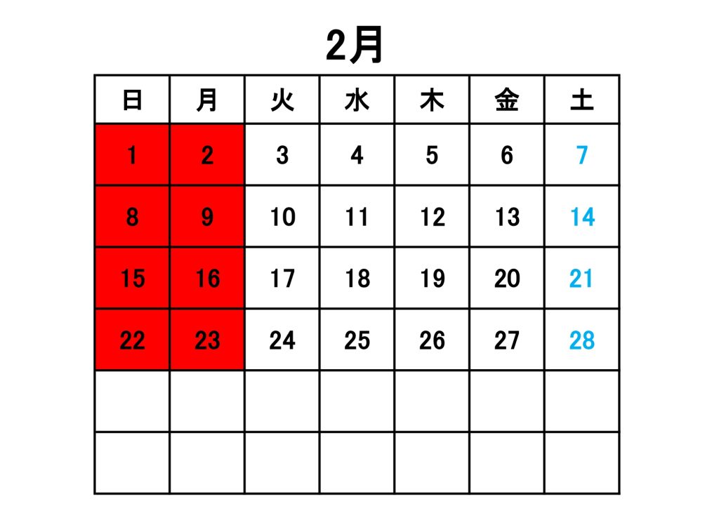 2月の営業カレンダーです。